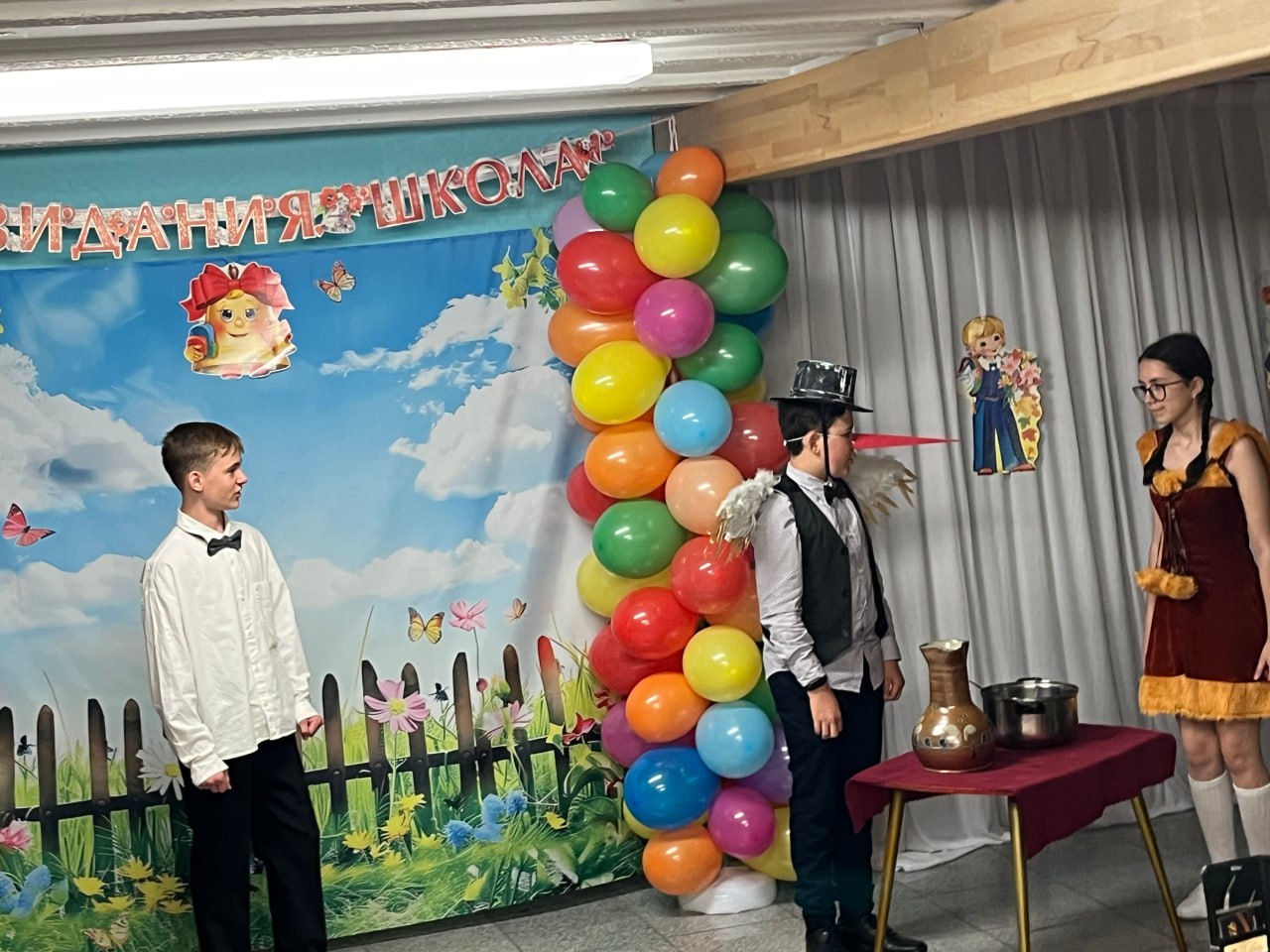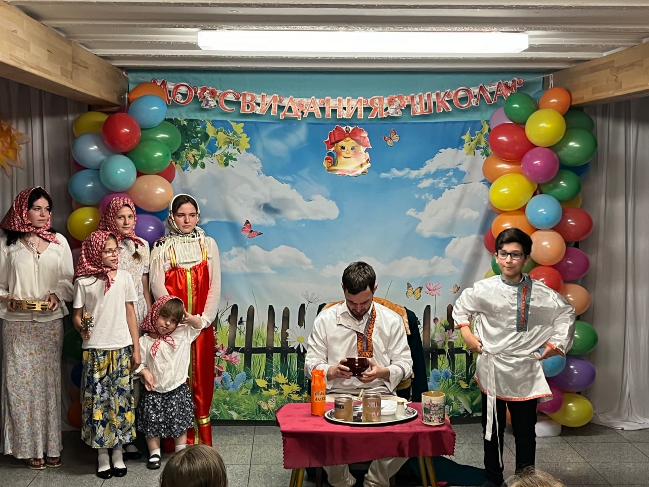 7 июня 2025 года в нашей школе прошел традиционный праздник по случаю окончания учебного года. Ребята под руководством учителей показали два итоговых выступления. Дети младших классов читали стихи, пели песни, показали сказку «Грибок». Праздник для детей старших классов проходил на тему «Русское народное творчество». Каждый класс приготовил свой номер. Это были инсценировки сказок, басен, русских народных песен и был показан кукольный спектакль «Гуси-лебеди». Ученикам были вручены дипломы и праздник закончился традиционным сладким столом.
